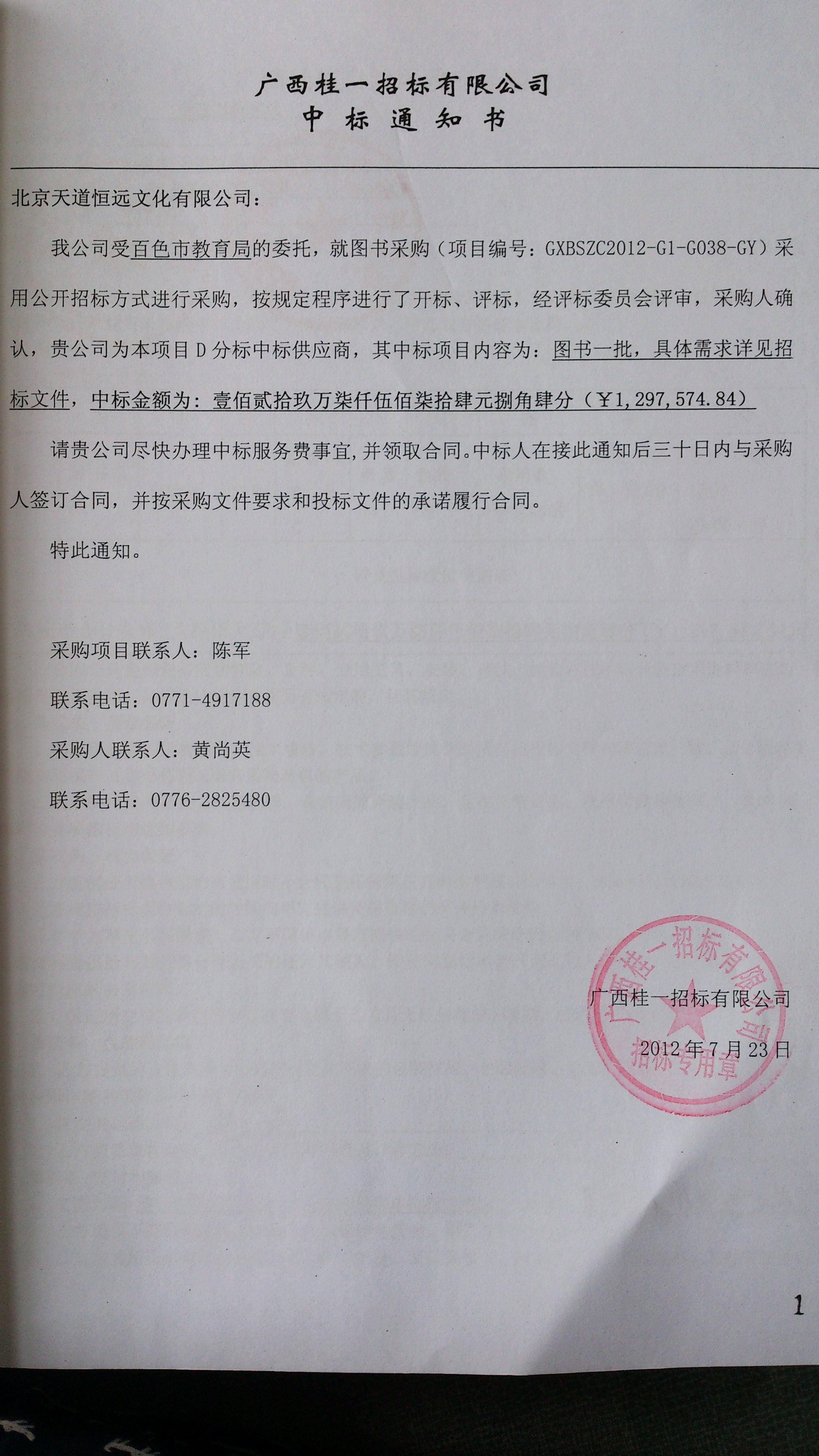 乙方(中标人):北京市天道恒远文化有限公司