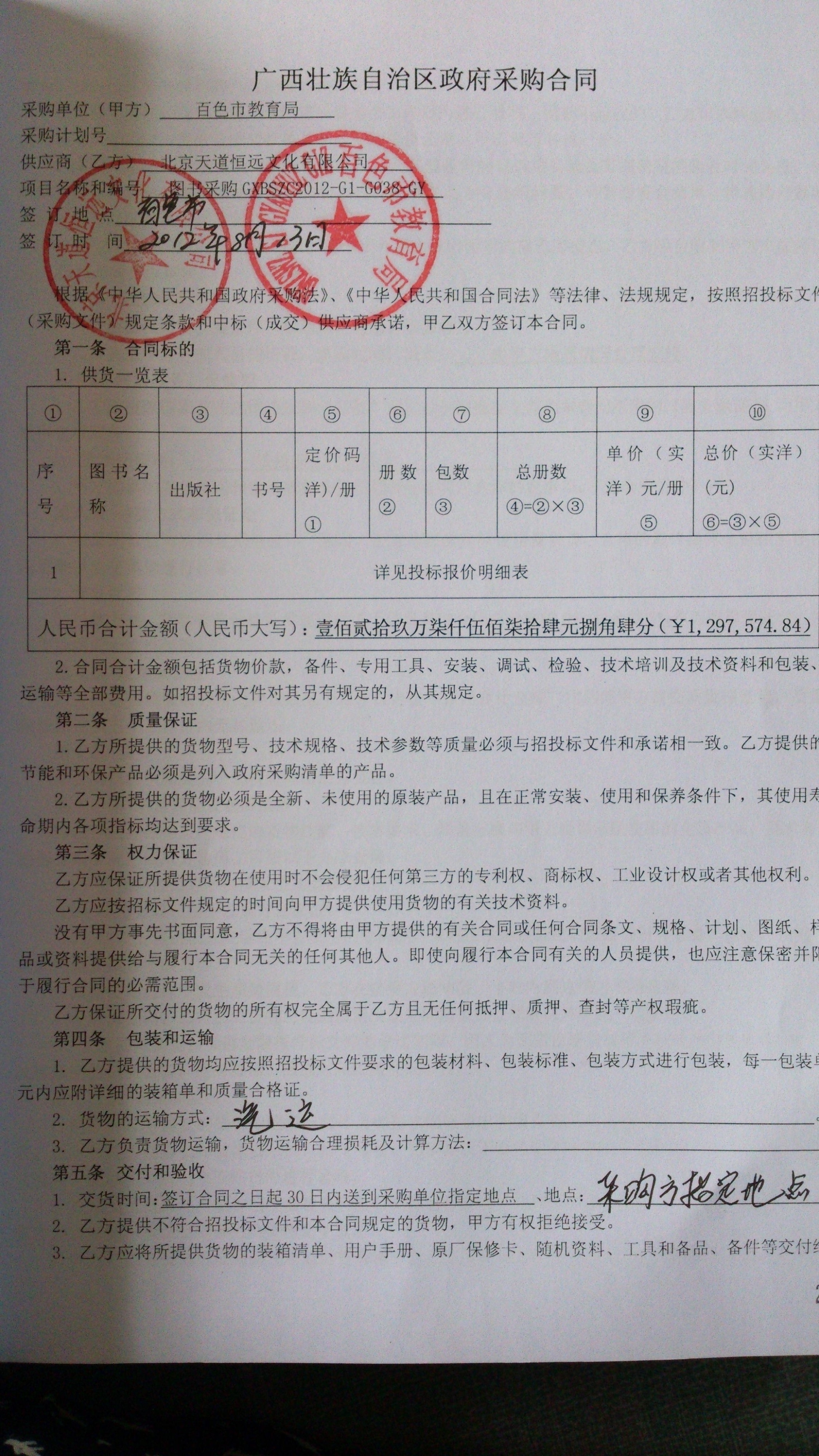 甲方(采购人):百色是教育局