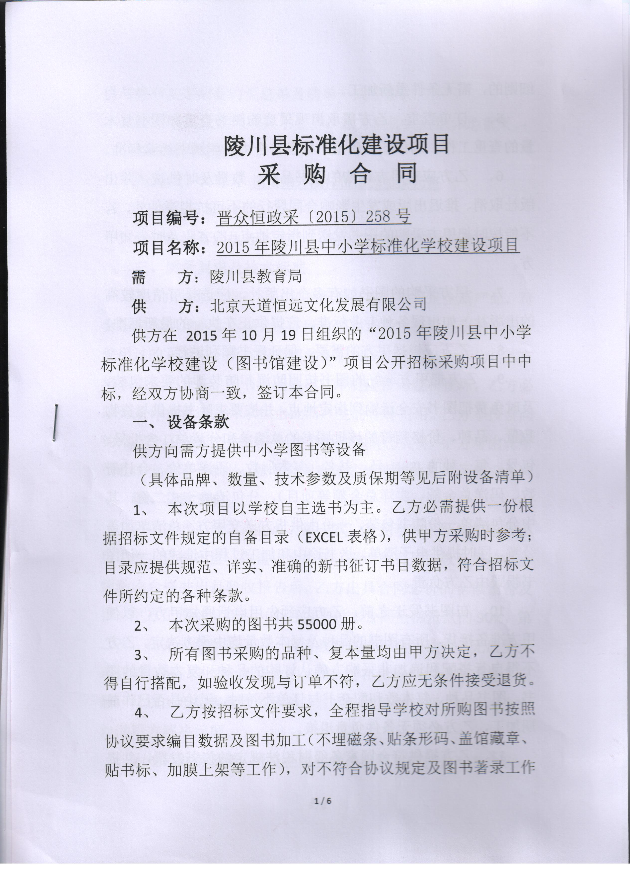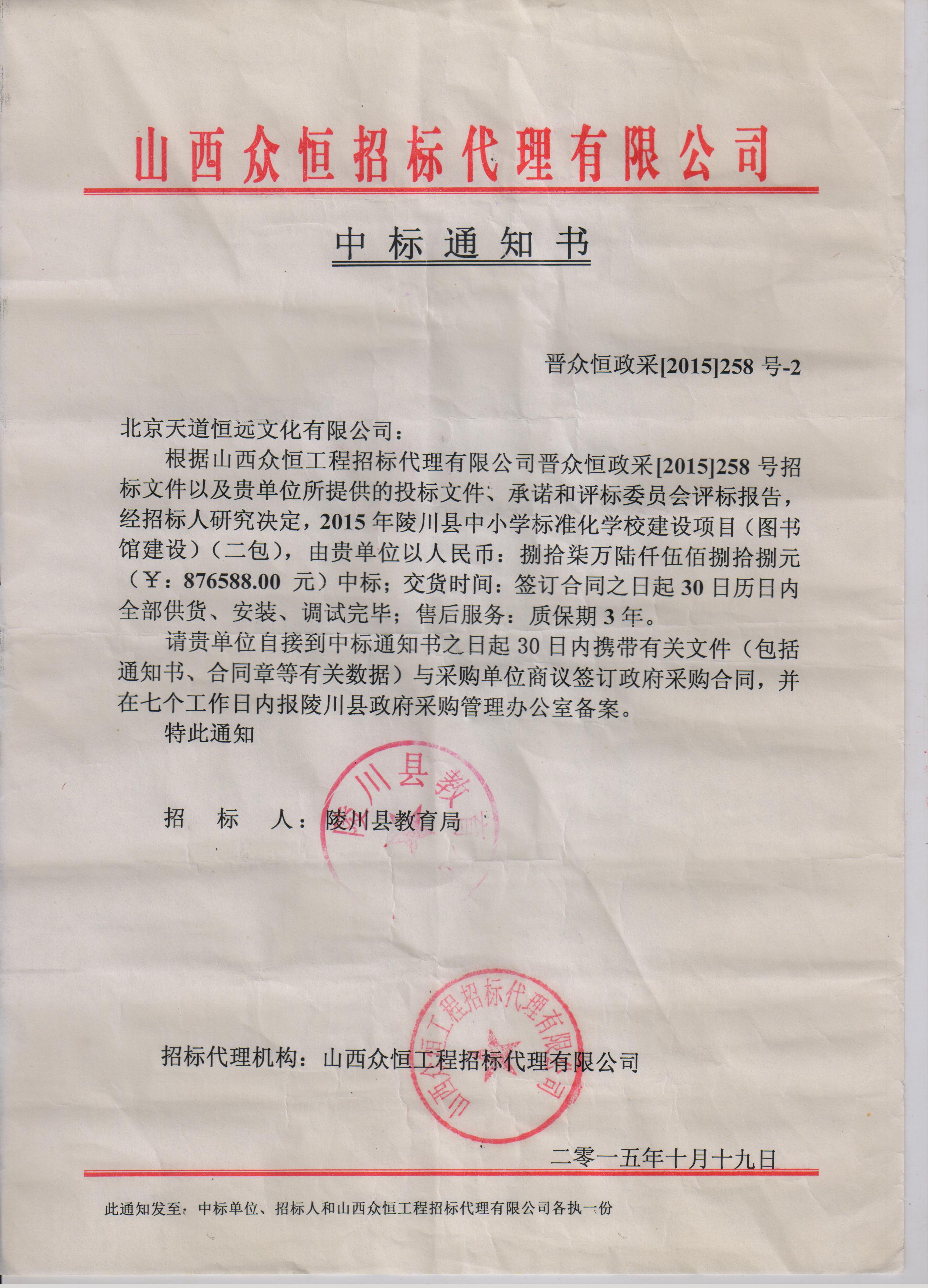 项目编号:晋众恒政采(2015)258号