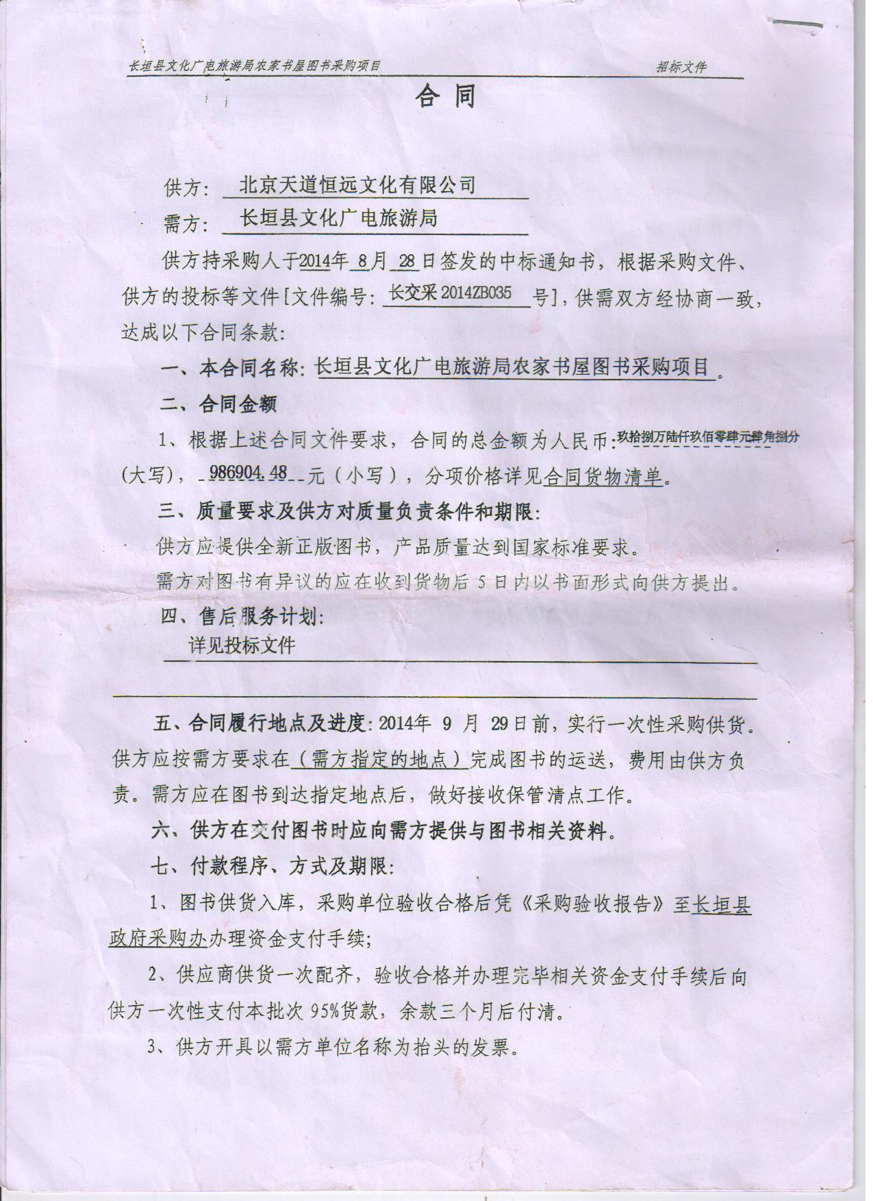 项目名称:长坦县文化广电旅游局农家书屋图书采购项目